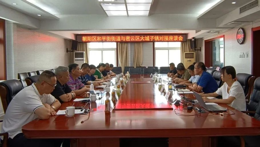 近日,朝阳区和平街街道与密云区大城子镇对接活动在大城子镇政府召开。和平街街道办事处主任关进国,副主任裴晓波,街道总工会主席薄述来,大城子镇党委书记魏志刚,党委副书记、镇长单维良等相关人员,以及和平街地区惠通达行商贸有限公司、天丰利购物广场等辖区单位负责人参加并开展交流座谈。