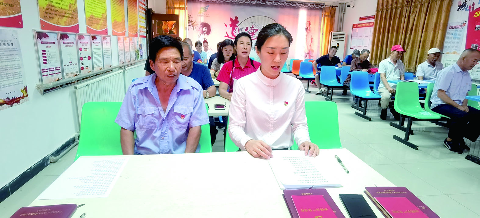 在党员大会上,刘颖和党员们一对一交心谈心,平日里到党员家中走访听需,搜集村民对于村庄发展的建议。