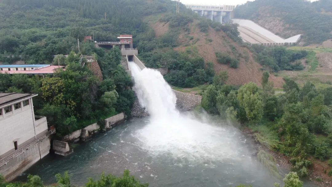 下午16时整,白河调节池泄洪闸和潮河输水洞口同时开启闸门,湍急的河水喷涌而出,白浪翻腾直泻而下,下泄流量分别为35立方米/秒和10立方米/秒。