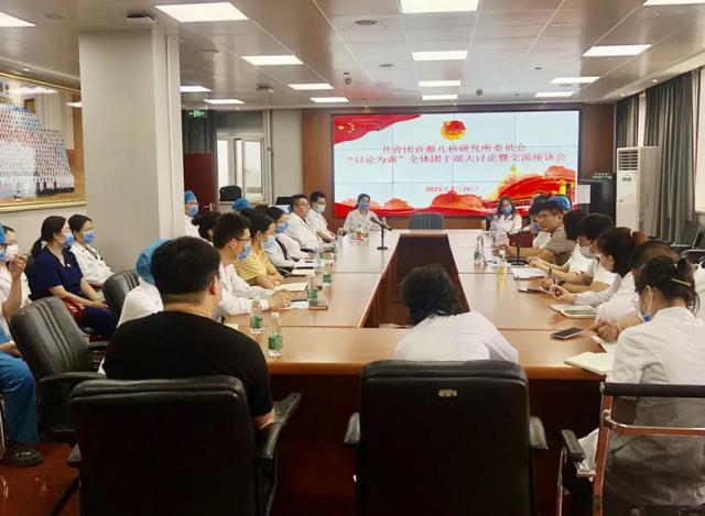 为加强新形势下党的群团工作,引领凝聚团员青年统一思想、同心同德、凝神聚力、应对挑战,不断提升共青团干部队伍建设水平,7月26日上午,首都儿科研究所团委在科研楼600会议室举办了“首儿所团委'以论为训'全体团干部大讨论暨交流座谈会”。纪委书记梁志波出席活动,团委委员和团支部委员34人参加会议。