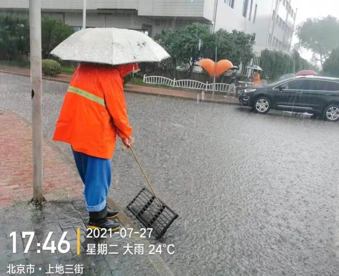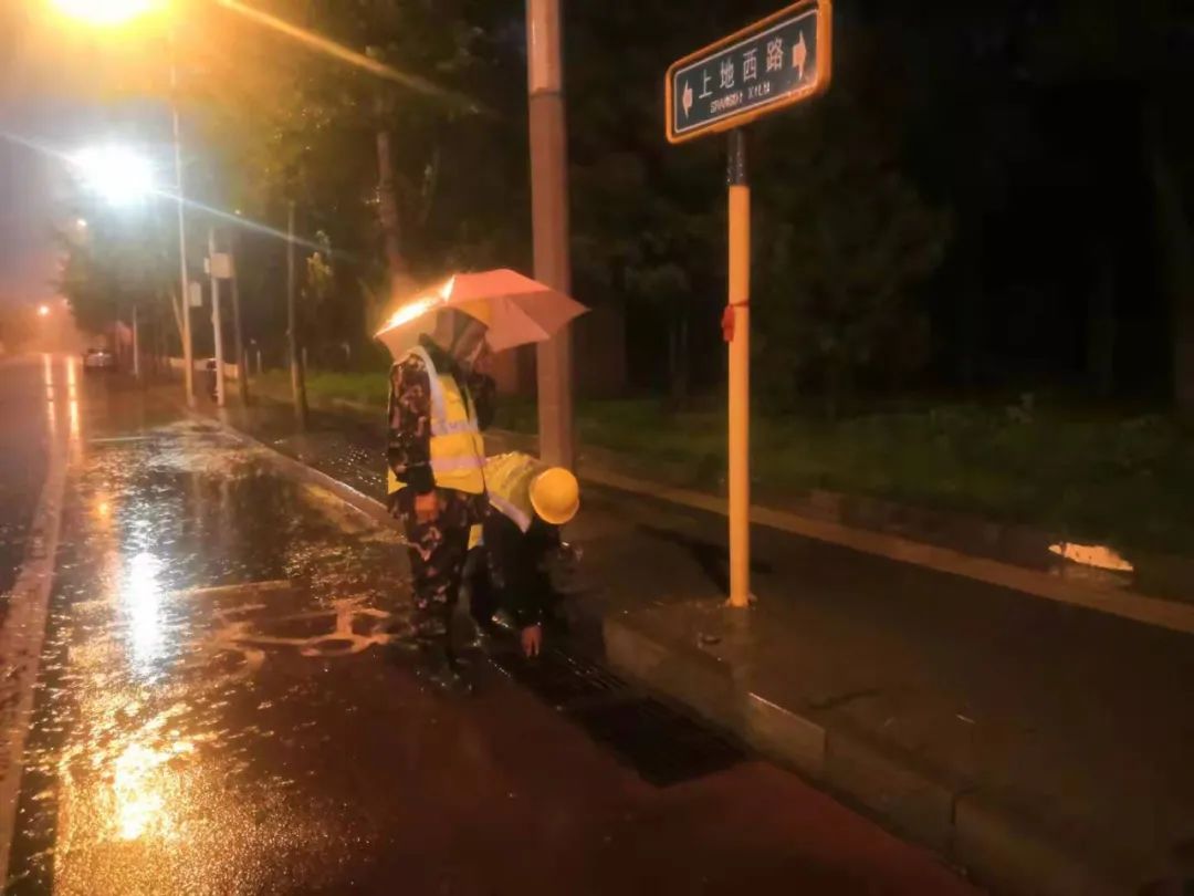 深夜的上地街头,发生着一幕幕暖心的瞬间,清理篦子、排积水、疏导交通……在雨中一干就是一夜,流过脸颊的已分不清是汗水还是雨水,但这些可爱的守夜人毫无怨言,正是有了他们的保障,才有整个地区的安宁与通畅。