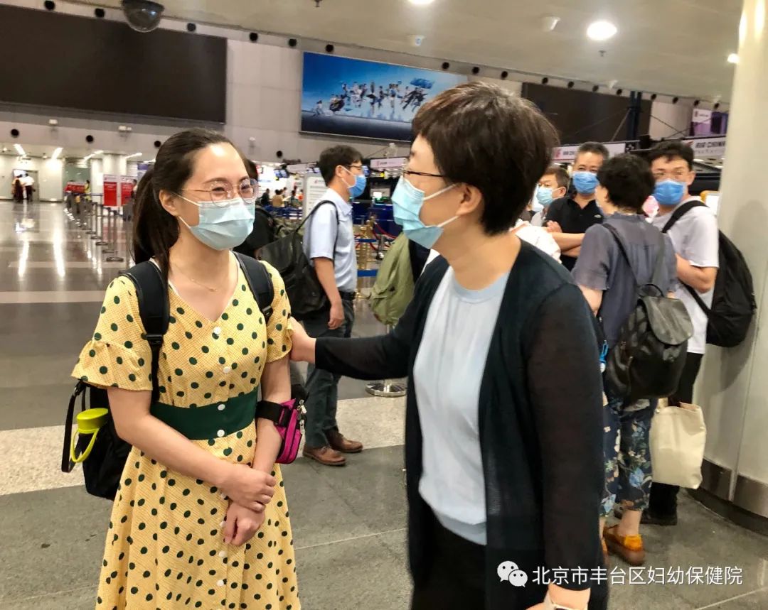 区卫生健康委副主任刘鹏、医疗保障科科长刘小瑜、丰台区妇幼保健院党总支书记彭飞、副院长谢彧洋及科教科杨帆前往送行。