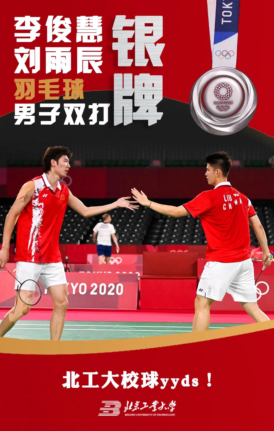 刚刚,在羽毛球男子双打决赛中,北工大2014级经管学院毕业生、“双塔组合”李俊慧和刘雨辰,为中国队再夺一枚银牌!