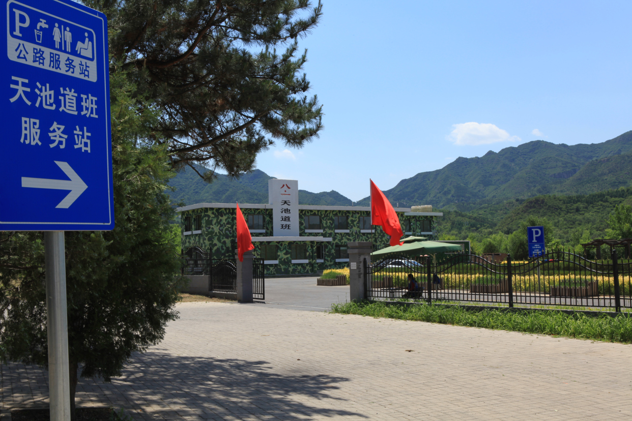在延庆区香营乡高家窑村村北,有“燕山天池”美誉的白河堡水库旁,坐落着外墙迷彩的“八一”天池道班。