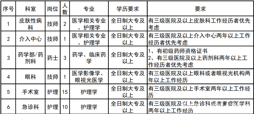 招聘岗位及具体要求
