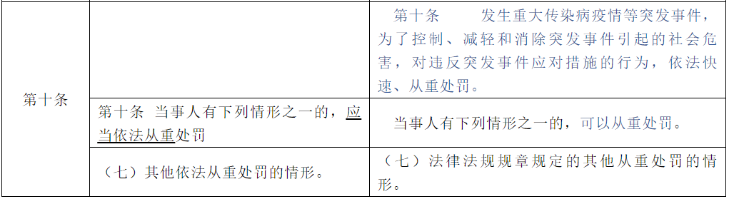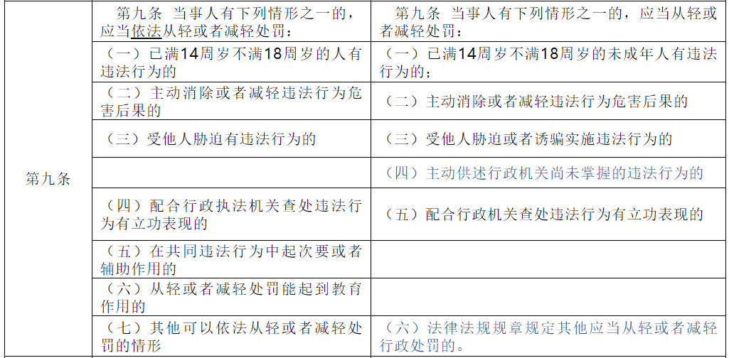 对标对表《行政处罚法》第30、31、32条对“不予处罚”“从轻或减轻处罚”“从重处罚”做出的新规定,修订了《裁量基准》第八、九、十条。