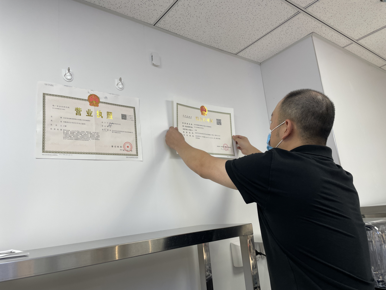 将电子版和纸质版材料交给“一业一证”专窗后,不到15分钟,现场办理流程就全部完成了。“这是便利蜂在北京新开门店中首个获颁行业综合许可证的门店。以往我们办理审批手续的时候,通常需要办理两个审批手续,大概需要一周左右时间。这一次,上午刚提交了材料,下午就取得了综合许可证,真切感受到了‘一业一证’政策的好处,可以让我们的时间成本、人力成本都能大幅减少,对我们来说意义重大。” 便利店证照部经理激动地说道。