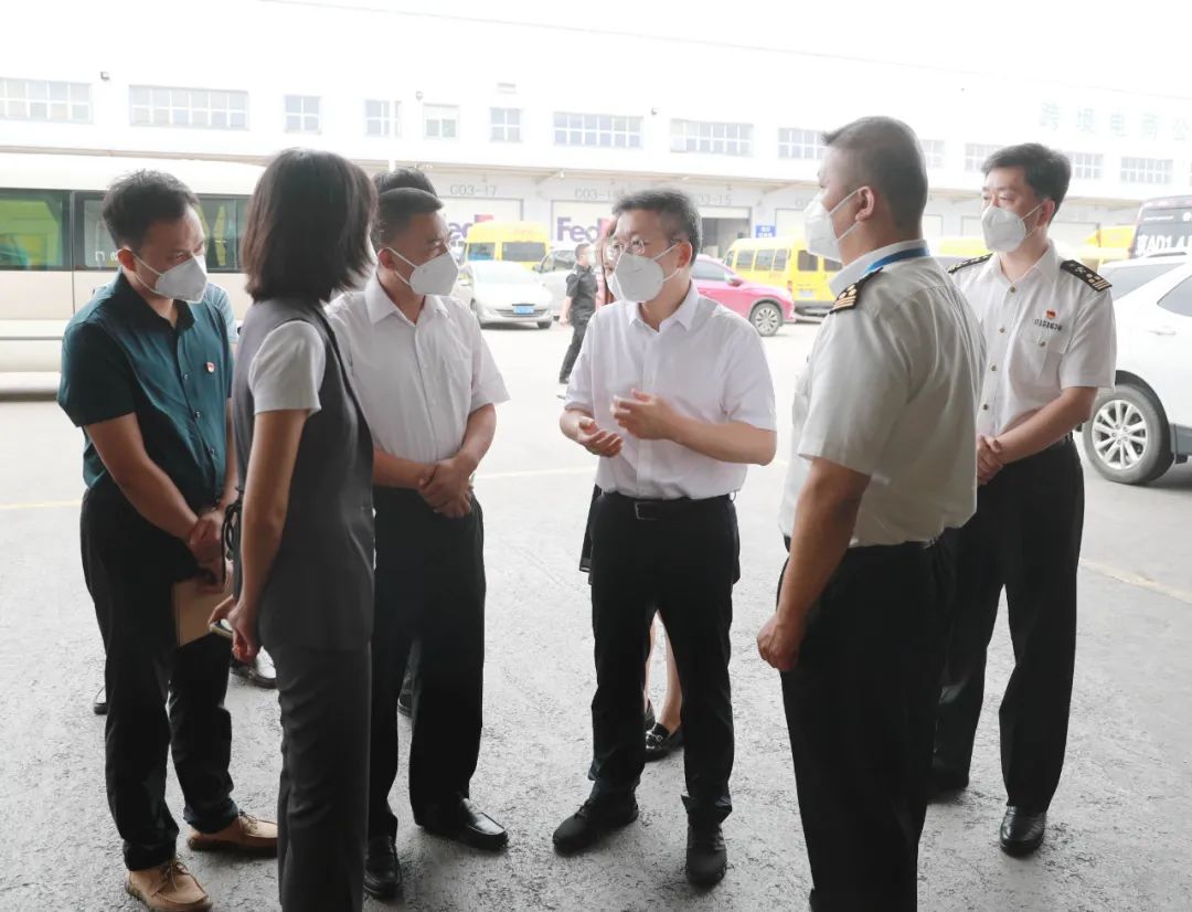 区委副书记、区长龚宗元到中外运—敦豪北京口岸查看国际快件防疫管理工作情况。