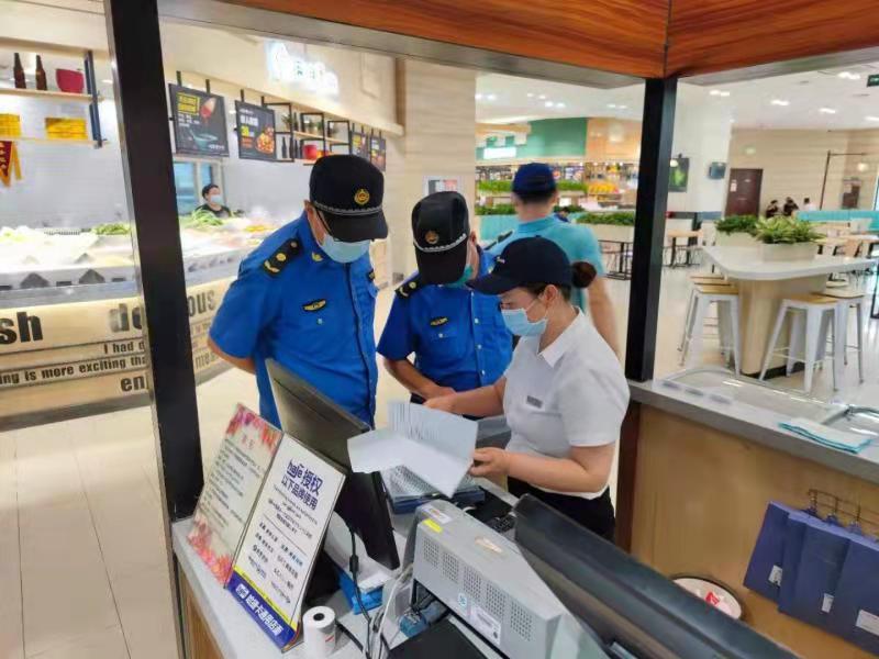 日前,昌平区史各庄街道综合行政执法队对永旺国际商城购物中心、北京国际信息产业基地两家商务楼宇以及领秀慧谷社区周边餐饮超市进行日常疫情防控巡查,提示相关负责人落实疫情防控责任,督促进店顾客扫码测温,并拟对未落实防疫规定的单位予以公示。