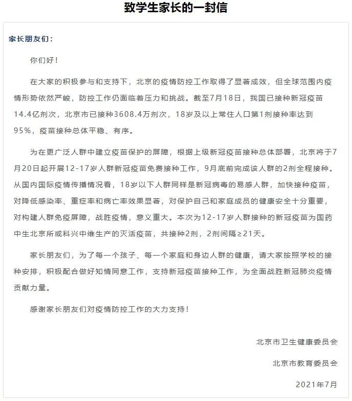 学校为开展好学生新冠疫苗接种工作,提前发放《致学生家长的一封信》,召开线上家长会,宣传疫苗接种相关知识,加强家校协同,强化共同责任。