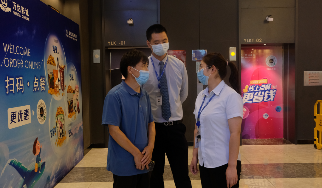 在万达影城记者看到,影城入口处,观影的市民都佩戴口罩,扫码、测温之后才进入影院。影院内也设置了各类防疫宣传标语,配备了消毒液、口罩等防控物资,工作人员每间隔2小时进行一次消杀工作,每场电影结束后,工作人员都会对影厅进行消杀。影院作为公众聚集场所,人流量大,安全隐患多,区商务局工作人员特意叮嘱万达影院负责人,要认真履行主体责任,严格落实疫情防控措施,配备防疫物资,确保观影安全。