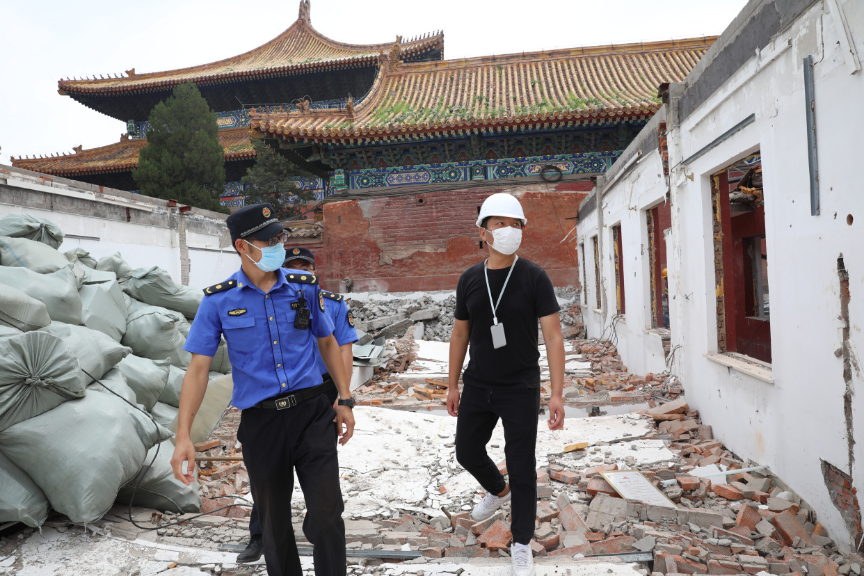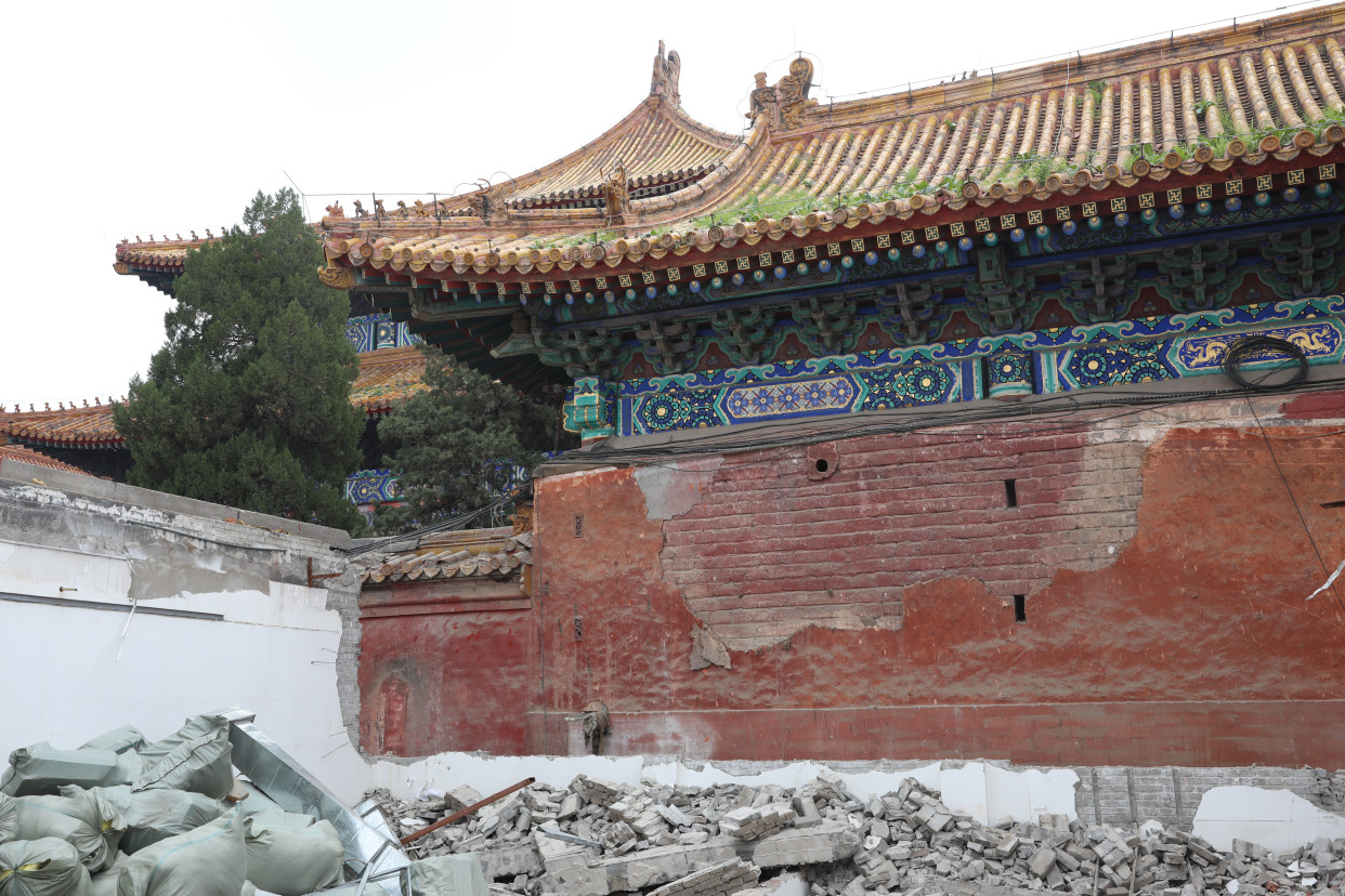 在拆除的过程中,由于所处之地为古建文物环绕,不容任何操作失误,施工方基本上都是采取“蚂蚁搬家”式的拆除,尽可能低的影响古建文物和来此观光游客的感受。