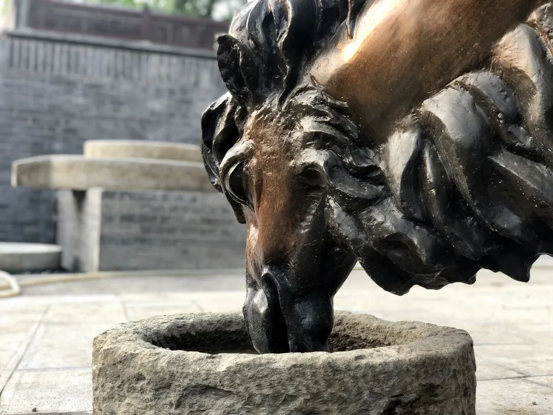 龙王庙广场定位为休闲驿站,记者看到,广场上一棵参天古树下设置了花坛石椅,老水井改造成了“涌泉水井”景观,一旁还设置了驼队饮水雕塑。