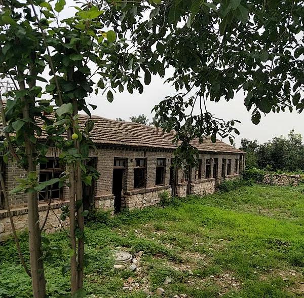 从知青大院旧址出来后,继续朝村北走去,会路过一个大院,遇见一棵大槐树、石墙、石房,带有原始色彩的山村乡居。这里的老石墙已经有上百年的历史,是原先村房的围墙,为提防泥石流,老房的村民们已经搬到山下住上了二层小洋楼。