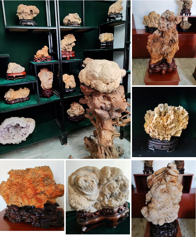 在村史馆不远处的大漠奇石馆,也值得一看。这里建筑面积500多平方米,馆内藏石种类繁多、造型多变、姿态丰富,其中以内蒙大漠石为主,是当今国内收藏大漠石最多的奇石馆之一。而且,这里的每一块奇石皆是出自天然,美的纯粹,美的质朴,美的栩栩如生。