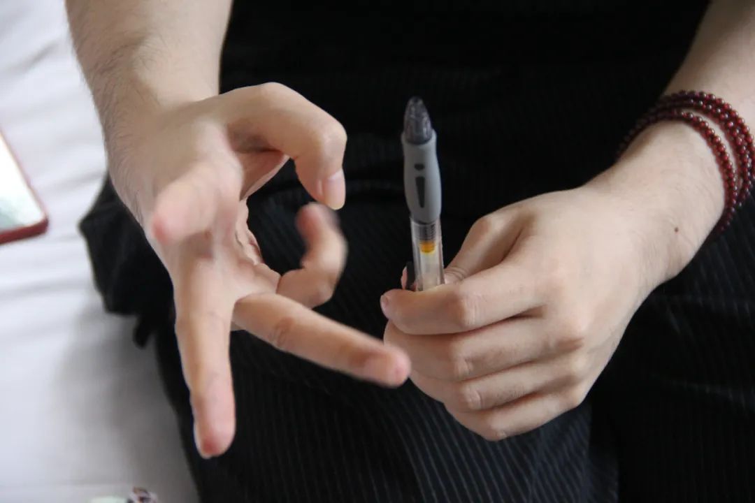 陈佳伊缠指甲的胶带上是粉色的卡通图案。因为长期治疗,导致她身体激素紊乱,汗毛很重,甚至会长胡子,但在她心里,仍然住着一个小女孩,她也特别喜欢娃娃