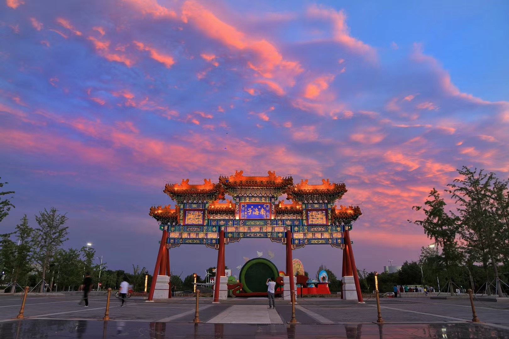 明永乐十二年(1414年)建苑囿海子墙时,北、南、东、西四个方位分别开了苑门,大门一律漆成大红色,分别被称为北红门、南红门、东红门和西红门。(“辟四门,缭以崇墉”《日下旧闻考》)。