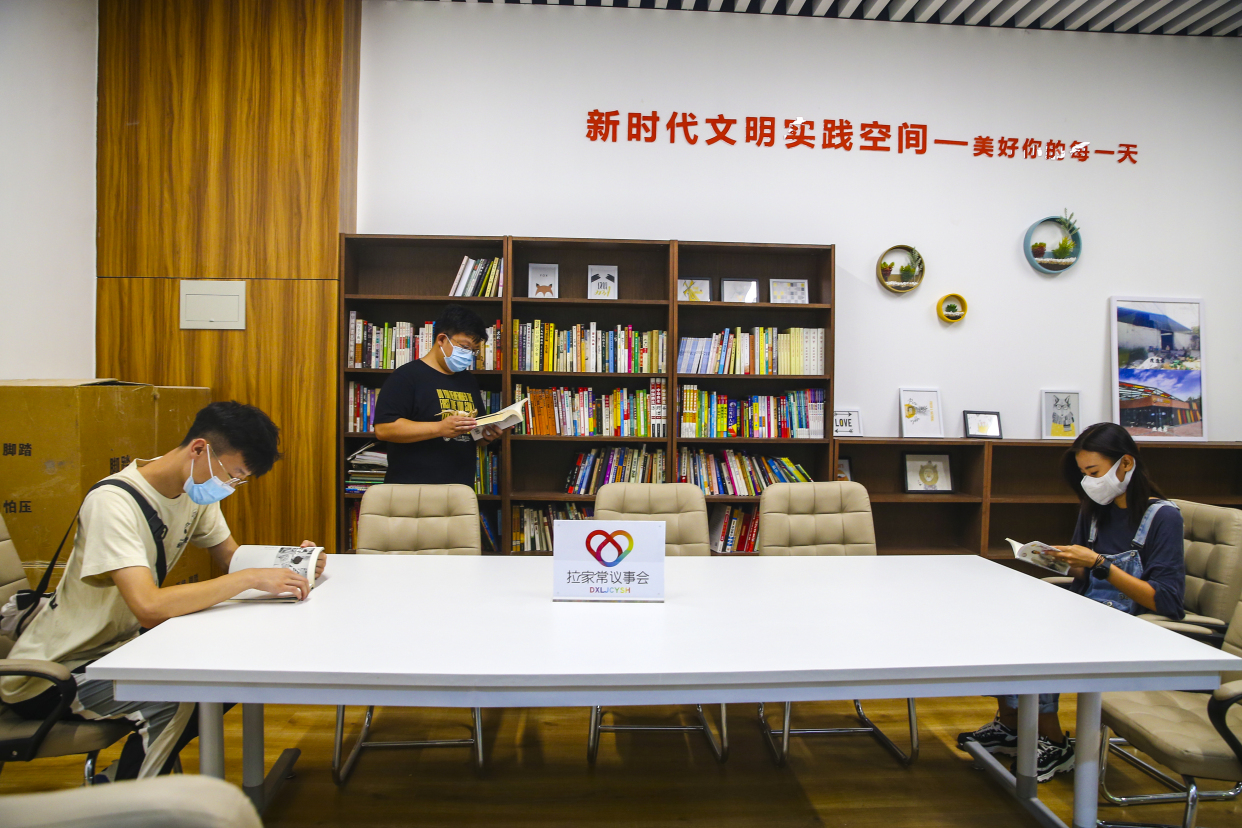 8月18日,记者在现场看到,便民综合服务中心保留了原有建筑整体风格,将工业美感和现代活力完美融合。一层的生鲜超市已经开门营业,货品齐全、价格合理、环境舒适,吸引了不少人前来购物;二层的社区公益空间,不仅有便民的社区食堂、裁缝铺、理发店,还打造了儿童活动空间和方便居民议事的“美好会客厅”;三层是咖啡屋式的文化书吧,书香加上咖啡香,难得的闹中取静。