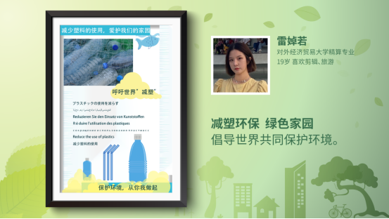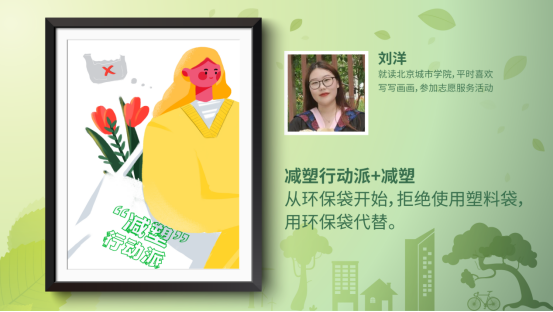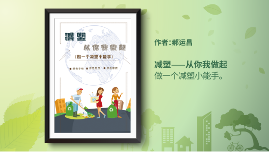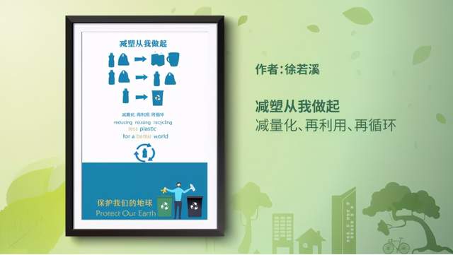 在“减塑”倡议下,我们征集到了不少志愿者带来的优秀公益宣传作品,他们用自己的笔触和创意将“减塑”理念更直观地展现,让我们一起走进“线上”展示厅,共同欣赏他们带来的绿色生活新风尚~