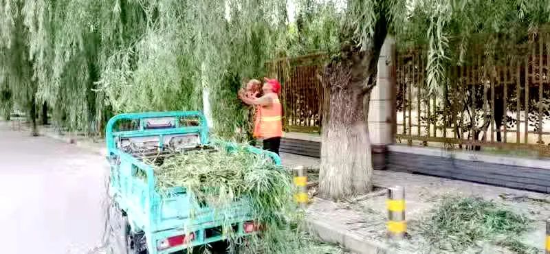 了解情况后,社区工作人员立即赶到现场查看,随后联系了辖区绿化二队工作人员对社区主路旁树木进行了合理的修剪,保证行人车辆的正常通行。经过一上午的功夫,12棵柳树修剪完毕。原本枯萎、杂乱的枝叶全部清理,被重新修剪后的树木又焕发出了勃勃生机,令居民担心的问题得以解决。通过此次树木修剪清理,不仅方便了居民日常出行,还营造了一个干净、整洁、美观、舒适的社区氛围。