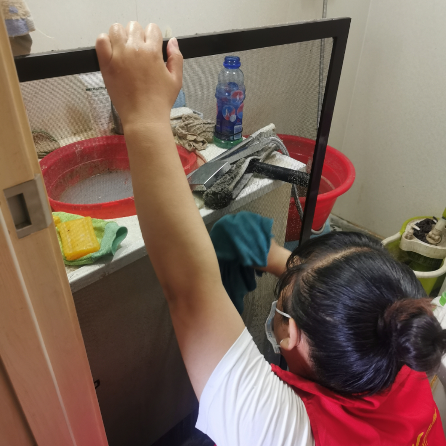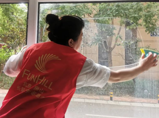 擦玻璃活动从刚刚开始,就受到了居民的热烈欢迎。为了在擦拭过程中不给居民家中带来更多的卫生清洁负担,服务人员都在之前带好自己的拖鞋,进入居民家中的时候,换上干净的拖鞋,再开始工作。六七月份的北京,正值酷暑,志愿者们每擦拭完一扇窗,汗水都会把衣服浸湿,满头是汗,但无论如何,每一处窗户都被擦得一尘不染,每一个纱窗都被冲洗得干干净净。工作结尾时也不忘把窗台、护栏都擦拭一新。