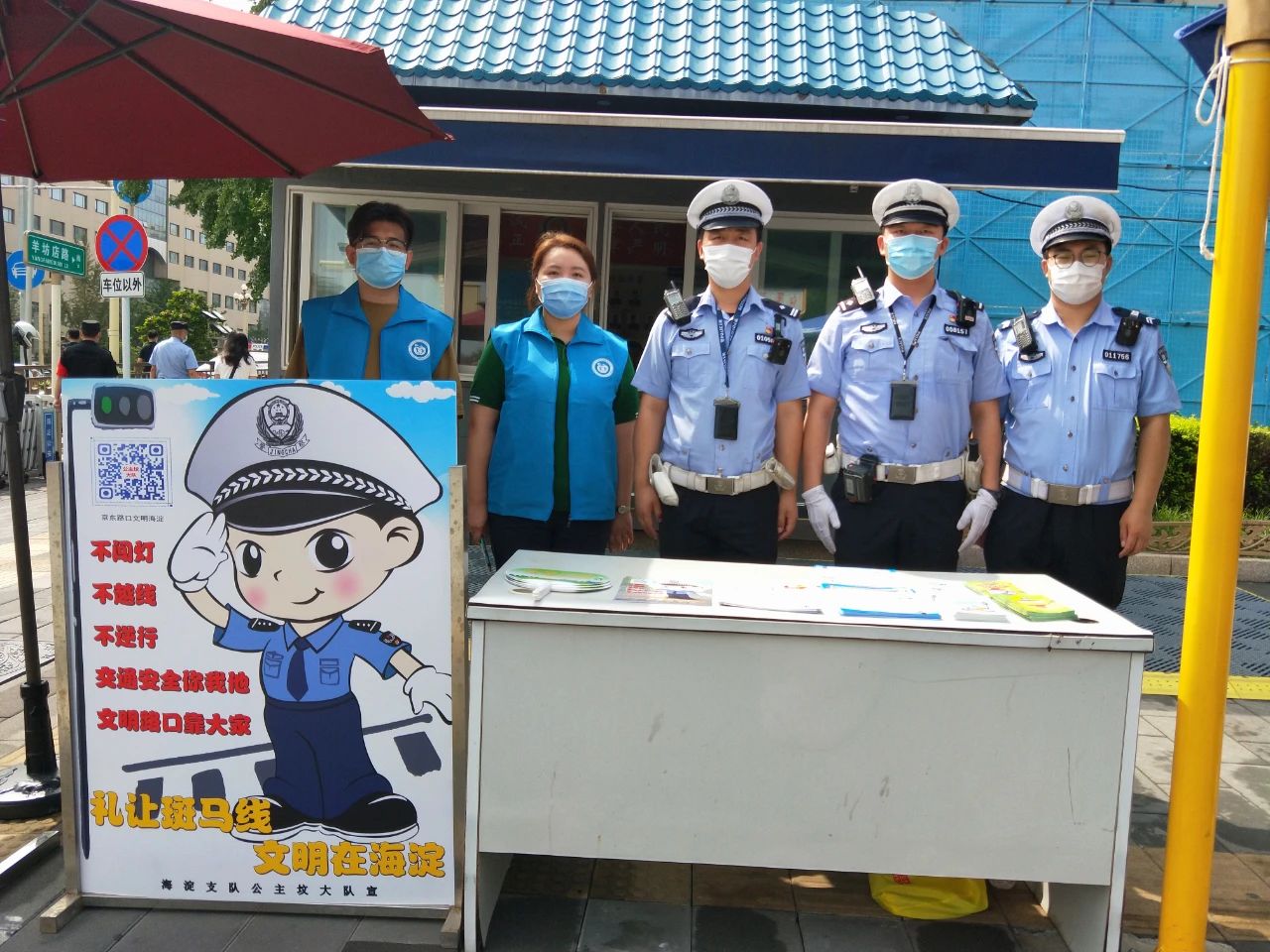 为认真贯彻《北京市文明行为促进条例》,8月20日上午,羊坊店街道团工委组织青年志愿者到京西宾馆东侧路口与海淀交通支队公主坟大队的民警们一同开展了“礼让斑马线文明在海淀”文明交通示范路口的启动活动。