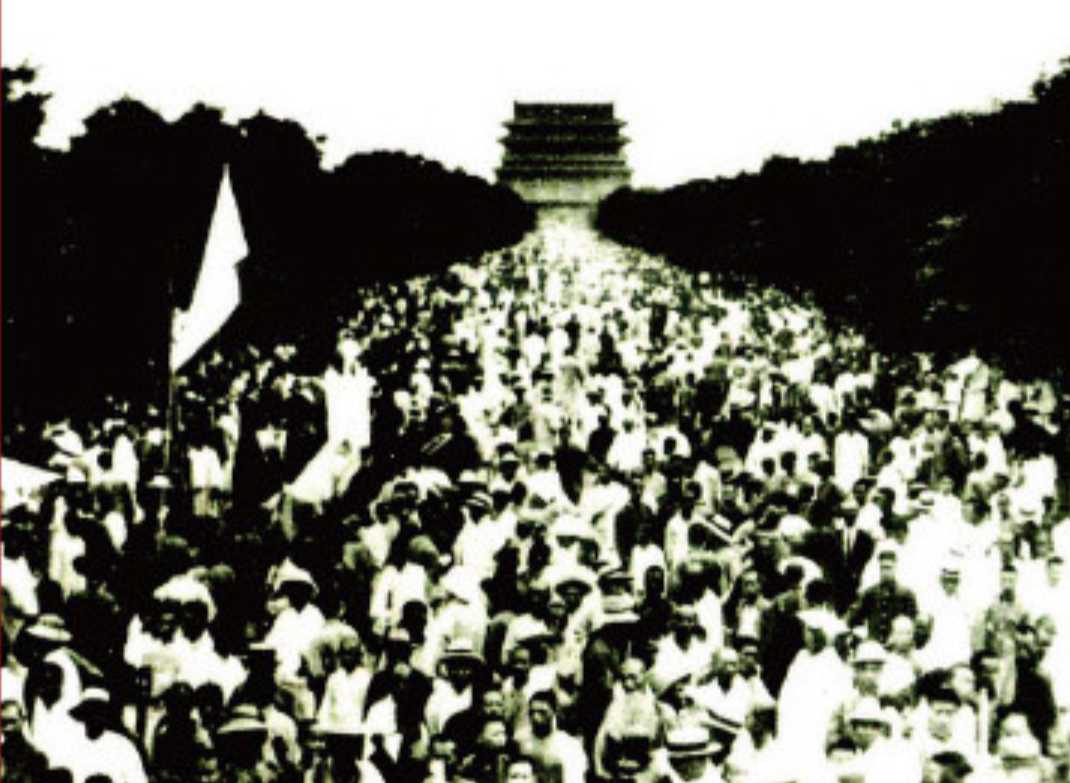 ▲1925年5月30日,震惊中外的五卅运动在上海爆发,并很快席卷全国。五卅运动是中国共产党领导下的群众性反帝爱国运动,它标志着大革命高潮的到来。(图为五卅运动北京总示威游行 )