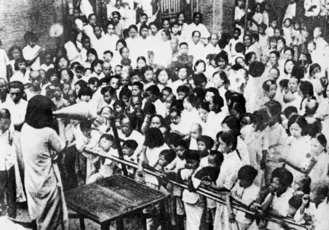 ▲学生们常常走上街头宣传抗日发表抗日演讲