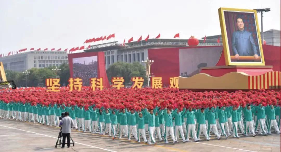▲交大师生参加庆祝新中国成立70周年群众游行“科学发展”方阵