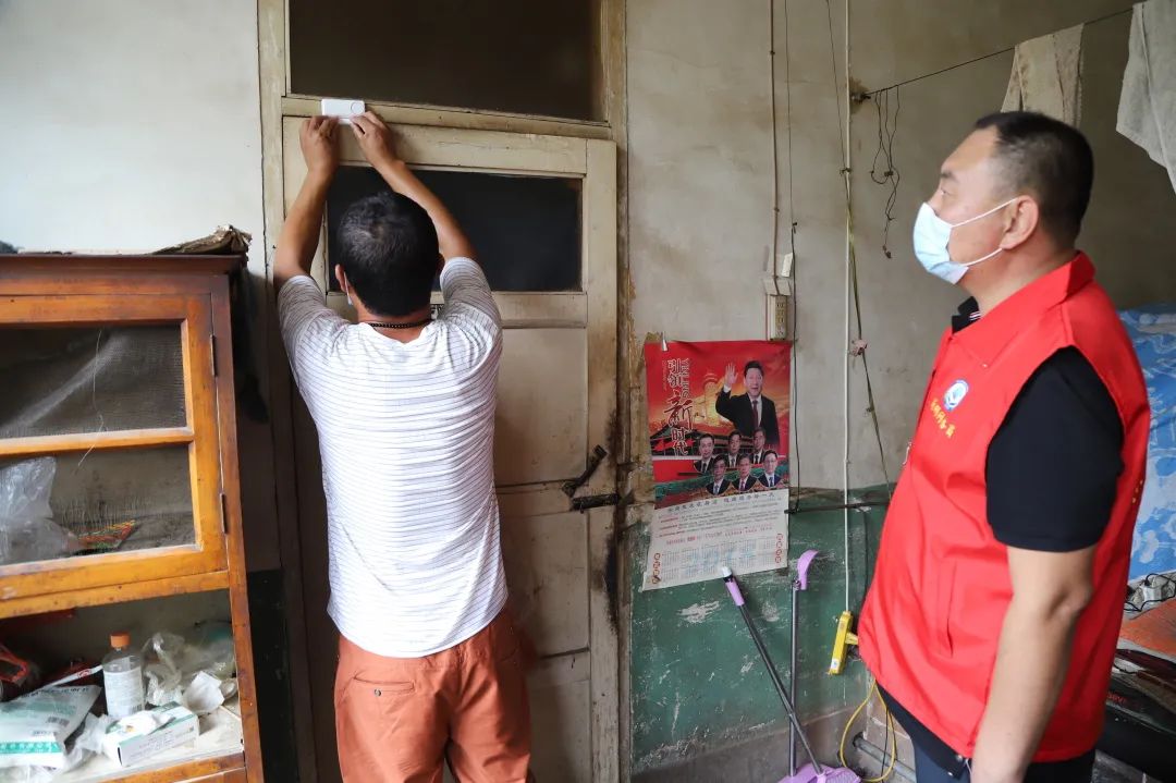 安装现场,网格员们经过反复的调试,将智能门磁设备合理的安装到老人的家中,保证在完全保障住户隐私安全的前提下,通过物理磁吸的开合,全天候监测开门状态,实时掌握老人开门情况。