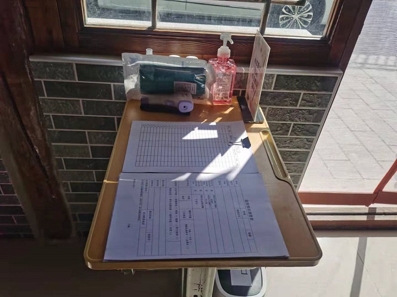 在仙人洞村旅游接待站,前台桌面上摆放着疫情期间宾客登记表,详细记录了入住客人的姓名、性别、来源地、电话、体温、有无中风险接触史等信息。