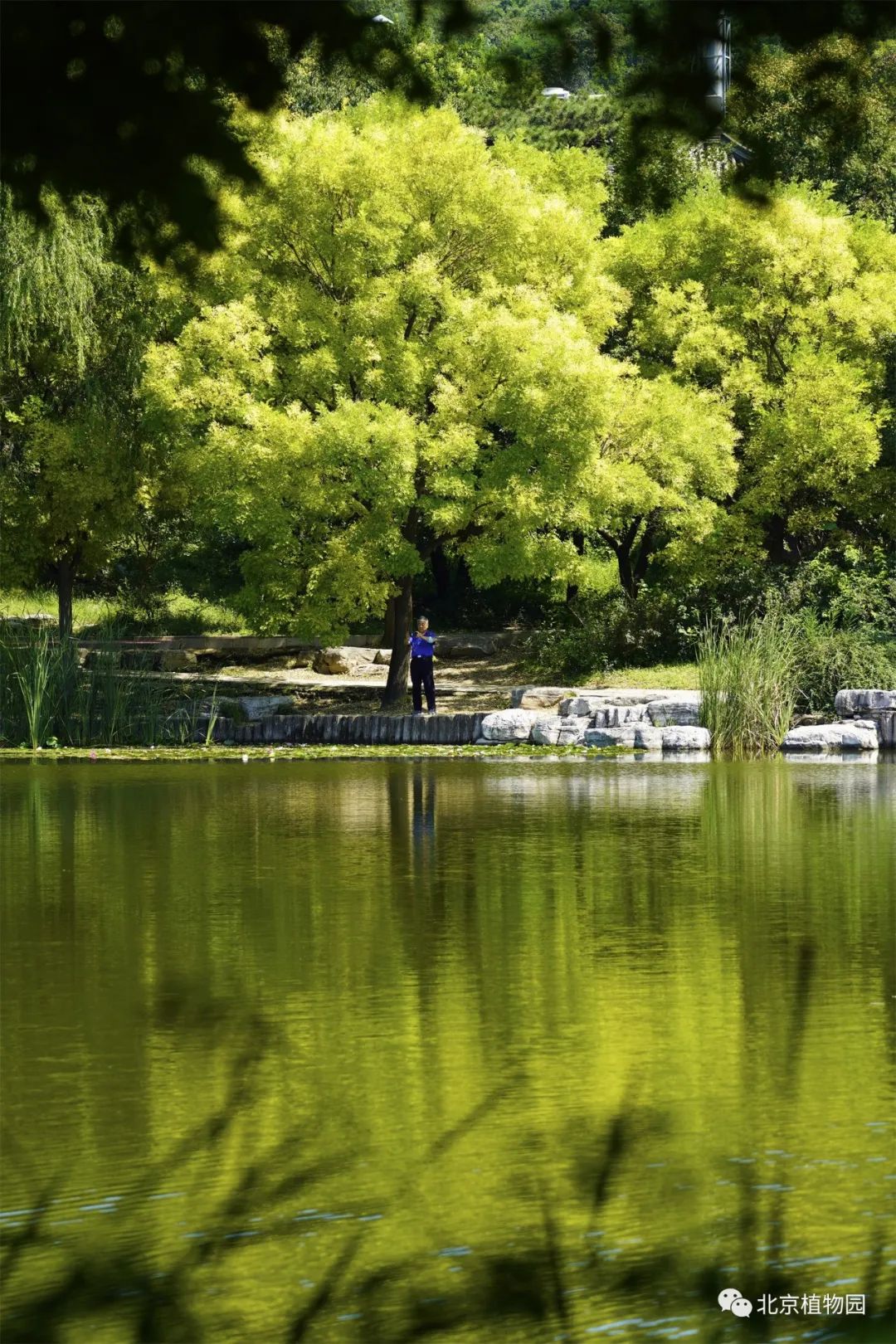 北京植物园的湖区周边,消退的夏意与初露的秋色,阵阵凉风掠过,吹散所剩无几的暑气,天高云淡,秋意渐浓,这时节的风景总是惬意迷人的。