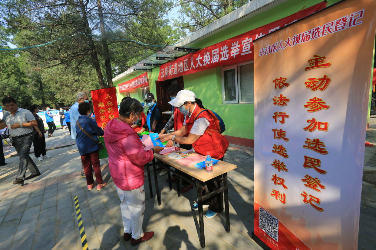 9月8日上午,丰台区选举工作委员会云岗街道地区分会在镇岗南里社区举行人大代表换届选举宣传活动。