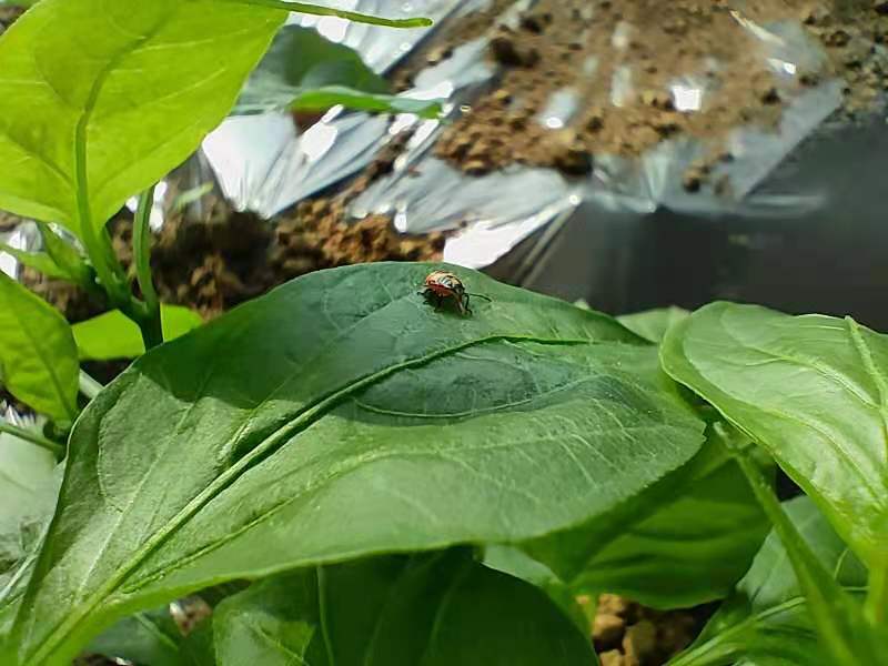 现场,技术人员先检查了大棚中作物受虫害的情况,然后以人工投放的形式,按剂量分不同区域投放蠋蝽。据介绍,蠋蝽是鳞翅目害虫的天敌。释放蠋蝽是生物防治里“以虫治虫”天敌防治的方式,以此加强对温室蔬菜常爆发的鳞翅目害虫,以及近两年入侵害虫草地贪夜蛾的防控。