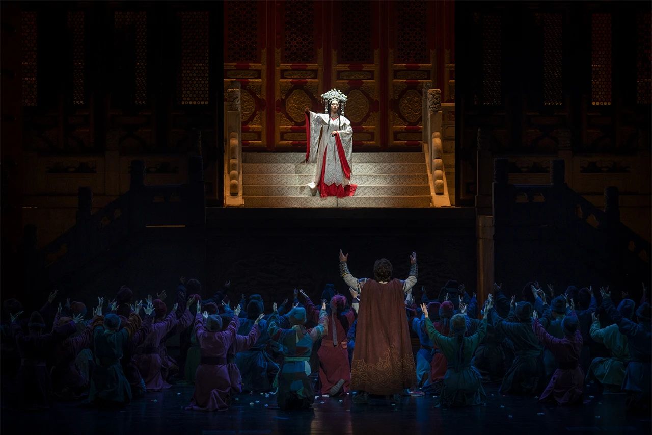 本场开幕演出的剧目是意大利经典歌剧《图兰朵》,么红担任艺术指导并饰演柳儿,首席常任指挥袁丁指挥。剧中主要角色分别由刘艳花、李爽、田浩、耿哲、刘怡然、李想、贾令、张鹏等一线实力青年歌唱家担纲。么红饰演的柳儿,一亮嗓就惊艳全场,她唱着一个少女羞怯而隐秘的爱情,将苦苦哀求和期盼的情绪演绎得曲折动人;李爽扮演的卡拉夫执着而深情,还带着一点年轻人的莽撞,他的坚持和大臣的劝慰在重唱中越来越坚决,极具戏剧冲突,让观众听得十分过瘾。刘艳花扮演的图兰朵公主,将复仇的歌唱得高亢嘹亮,而她高傲的姿态、凌厉的眼神,都如剧中形容的一样,含着冰霜。充满东方韵味的音乐,以及艺术家精彩的表演让观众如痴如醉。