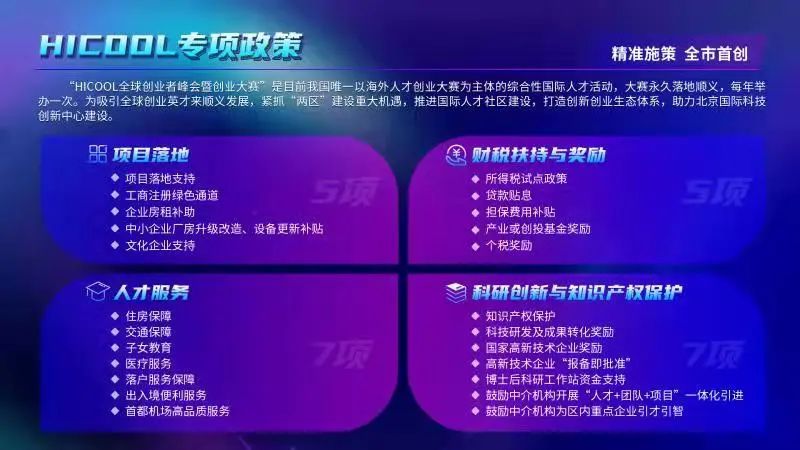 为吸引全球创业英才来顺义发展,紧抓“两区”建设重大机遇,推进国际人才社区建设,打造创新创业生态体系,助力北京国际科技创新中心建设,顺义区特制定《HICOOL大赛人才及创业项目落地支持办法》。