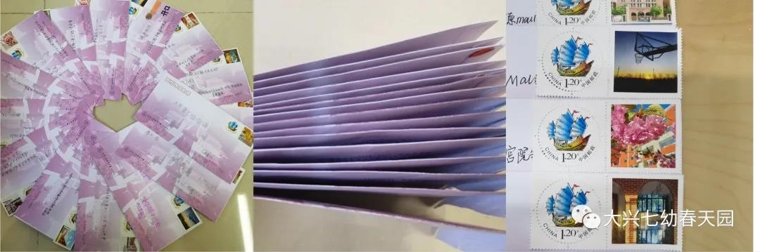 今天,一位家长把一摞厚厚的信件交托到大兴七幼春天园的老师手中,看着这沉甸甸的来信,老师们在想:这是谁的来信?信是寄给谁的?每一封信都是清华大学附属中学大兴学校的粉色信封,上面粘贴着小学的特色邮票,上面工工整整的写着幼儿园的地址、收信人、寄信人、邮编等信息。