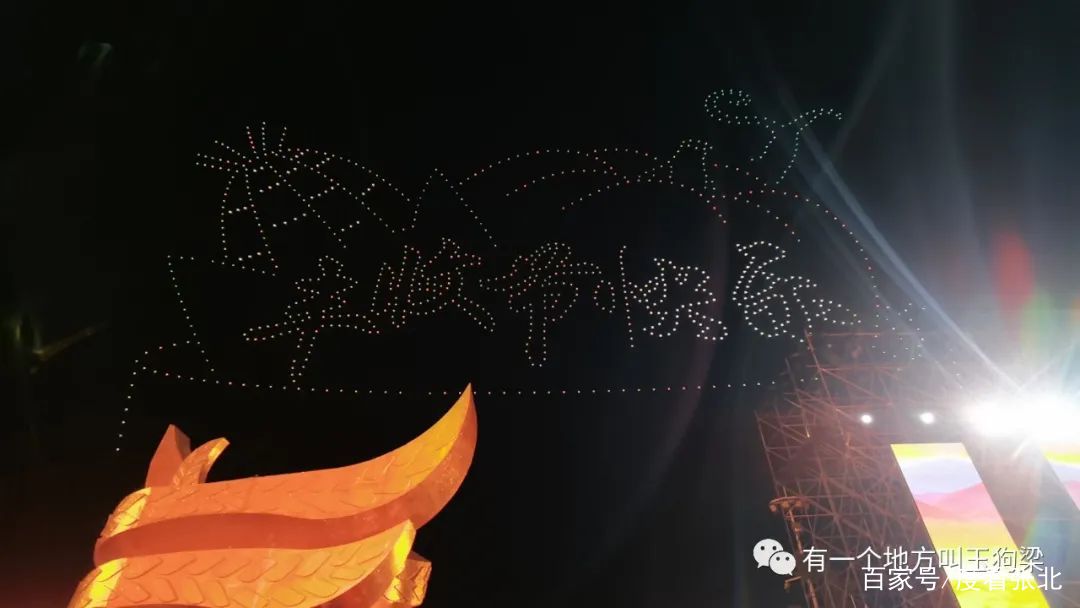 无人机方阵在舞台的上空写出了“丰收节快乐”