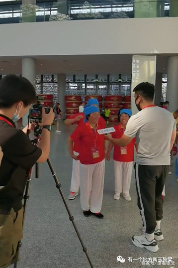 排练期间,中央电视台“央视三农”记者采访玉狗梁瑜伽老人。