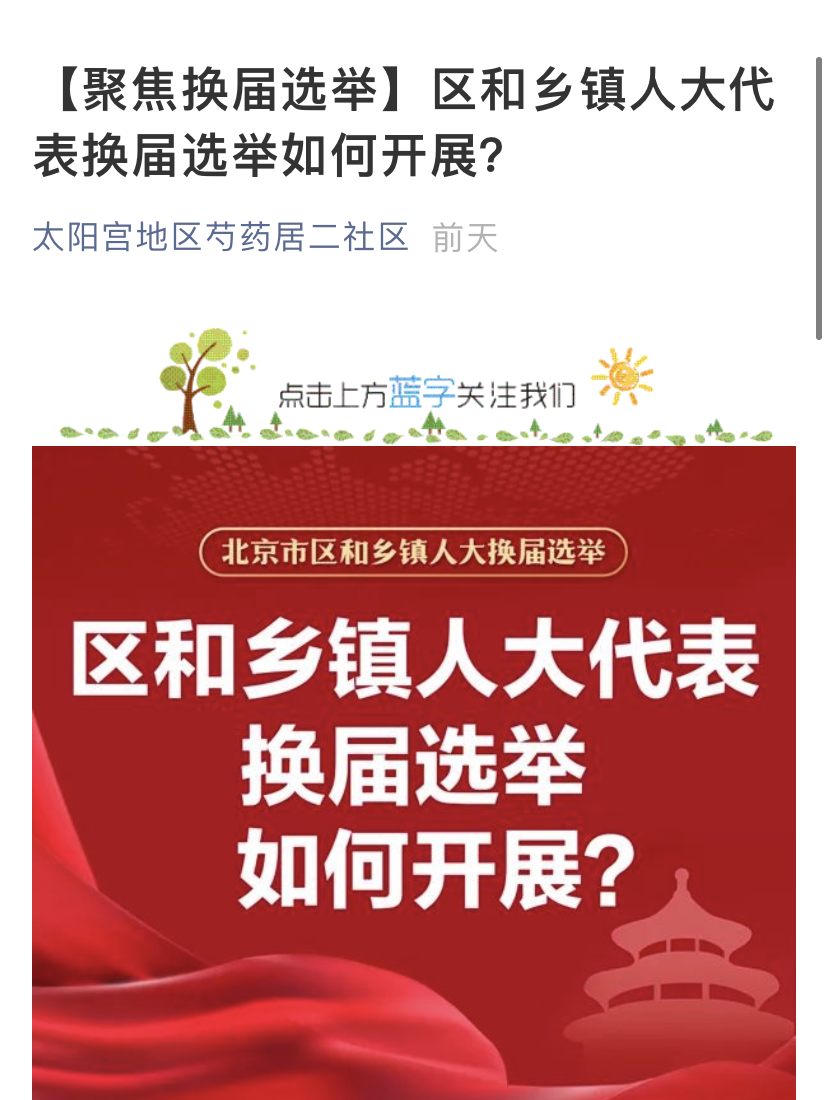 针对辖区小区多、流动人口量大、人户分离多的情况,各选区充分利用宣传栏、微信公众号、QQ群等宣传阵地,张贴宣传海报、《致朝阳区选民的一封信》,发布宣传信息,不断扩大宣传范围,提高知晓率。