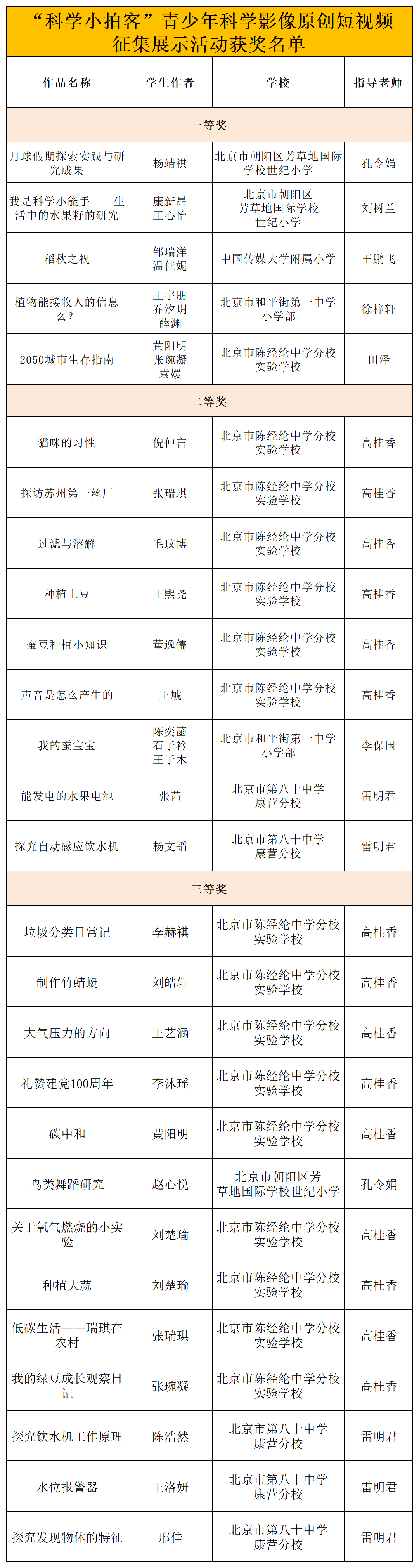 第十一届北京国际电影节青少年科学影像单元暨第三届北京国际青少年科学影像展评展映活动圆满落幕啦!