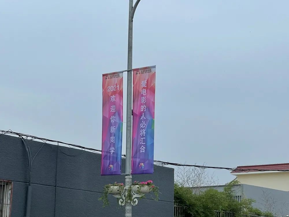 9月14日上午,北京电影学院2021级新生,开学典礼在怀柔校区举行,1400余名师生入驻怀柔新校区,中国影都用着最热情的方式,欢迎新生们的到来,还没有进到校区,远远就看到无数悬挂在凤翔西街,平安东路道路两侧的道旗正迎风飘展“你好新同学 怀柔欢迎你”“爱电影的人必将汇合”