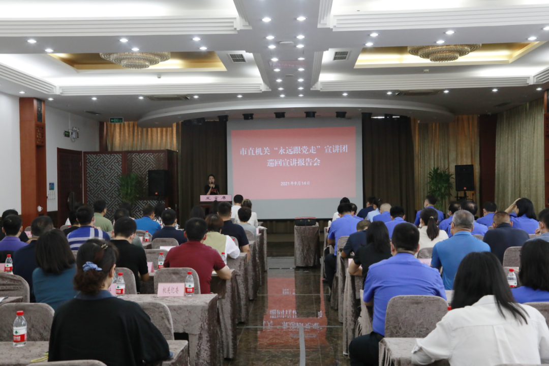 为进一步营造浓厚学习氛围,推动党史学习教育深入开展,9月14日,市城市管理委邀请市直机关“永远跟党走”宣讲团来我委开展宣讲。委机关各处室、市城管执法局、委直属事业单位的党支部书记和党员干部共计一百余人参加市直机关“永远跟党走”宣讲团巡回宣讲报告会。