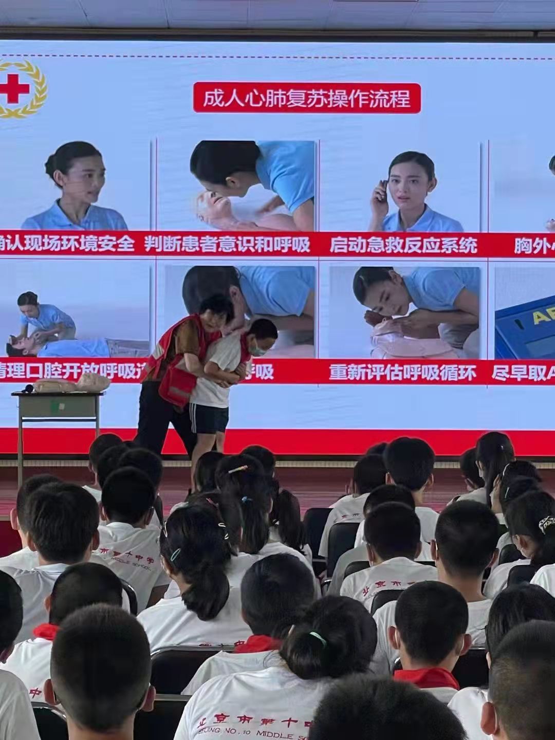 9月11日是第22个“世界急救日”,今年的活动主题是“做学校、社区的急救英雄”。为进一步传播应急救护知识与理念,提高师生的自救互救技能,近日,位于丰台区的北京市第十中学开展了“世界急救日”,“救”在你身边——纪念第21个“世界急救日”系列活动。