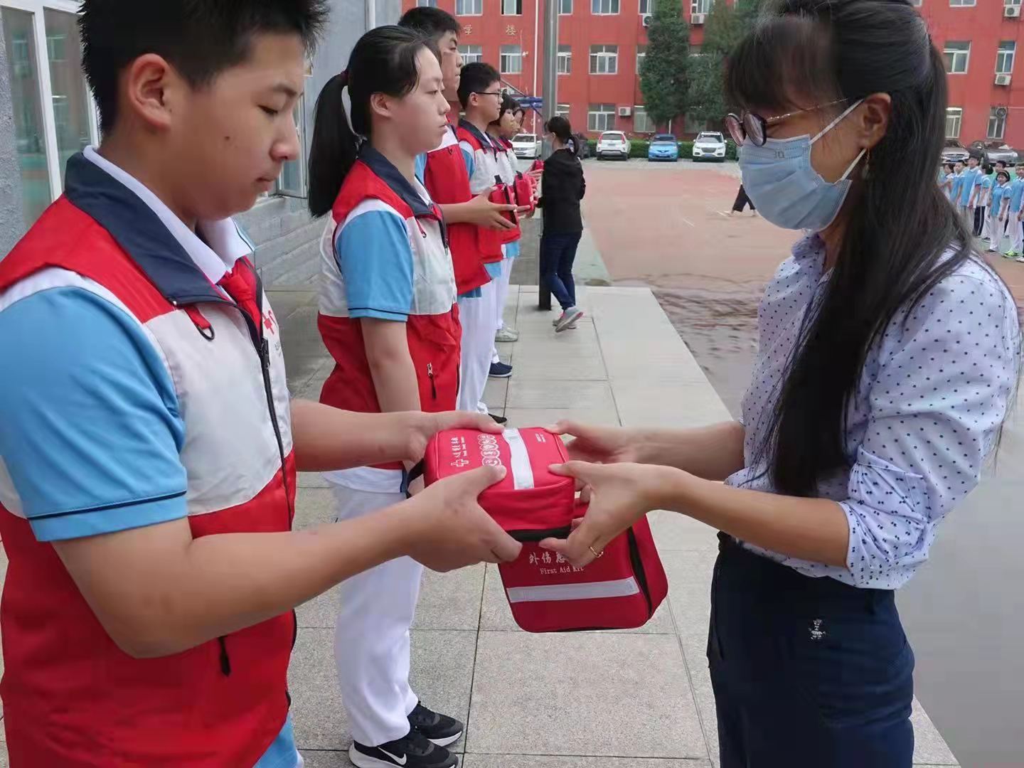 活动中,红十字会的老师为十中的红小豆们详细讲解了气道阻塞等突发情况的急救处理方法,使学生初步掌握现场急救的基本知识与技能。此外学校还进行了“急救包进班级”发放仪式,专门为各个班级配置了急救包和急救箱,内配有医用口罩、消毒液、救护手册、消毒片等急救物资。这些物资能够确保学校日常急救所需,方便广大师生在特殊情况下展开自救互救。