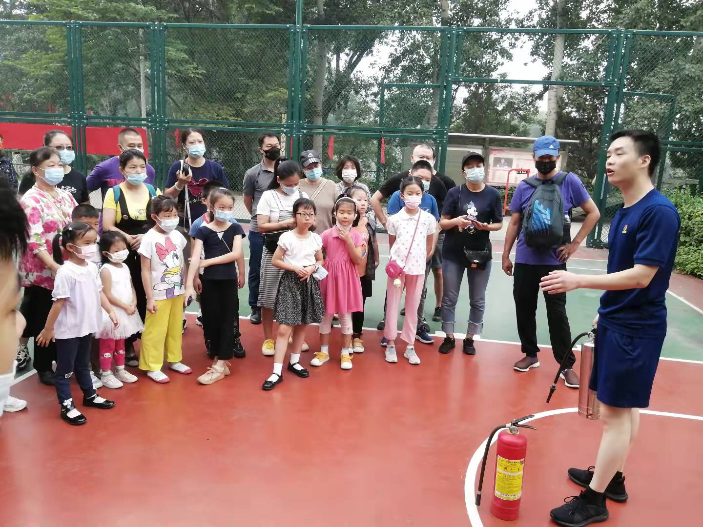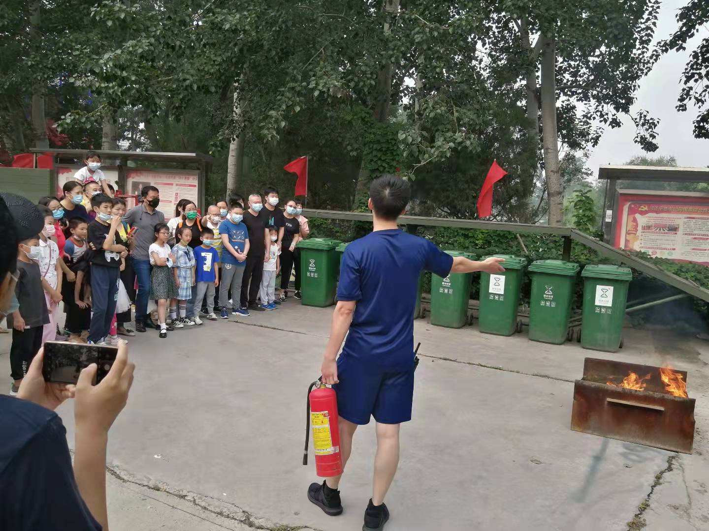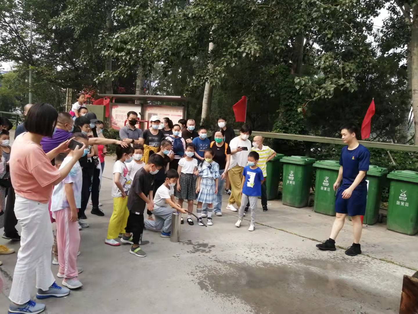 在接受培训后,家长和孩子们还掌握灭火器和墙壁消火栓使用规范,并接受简单测试。
