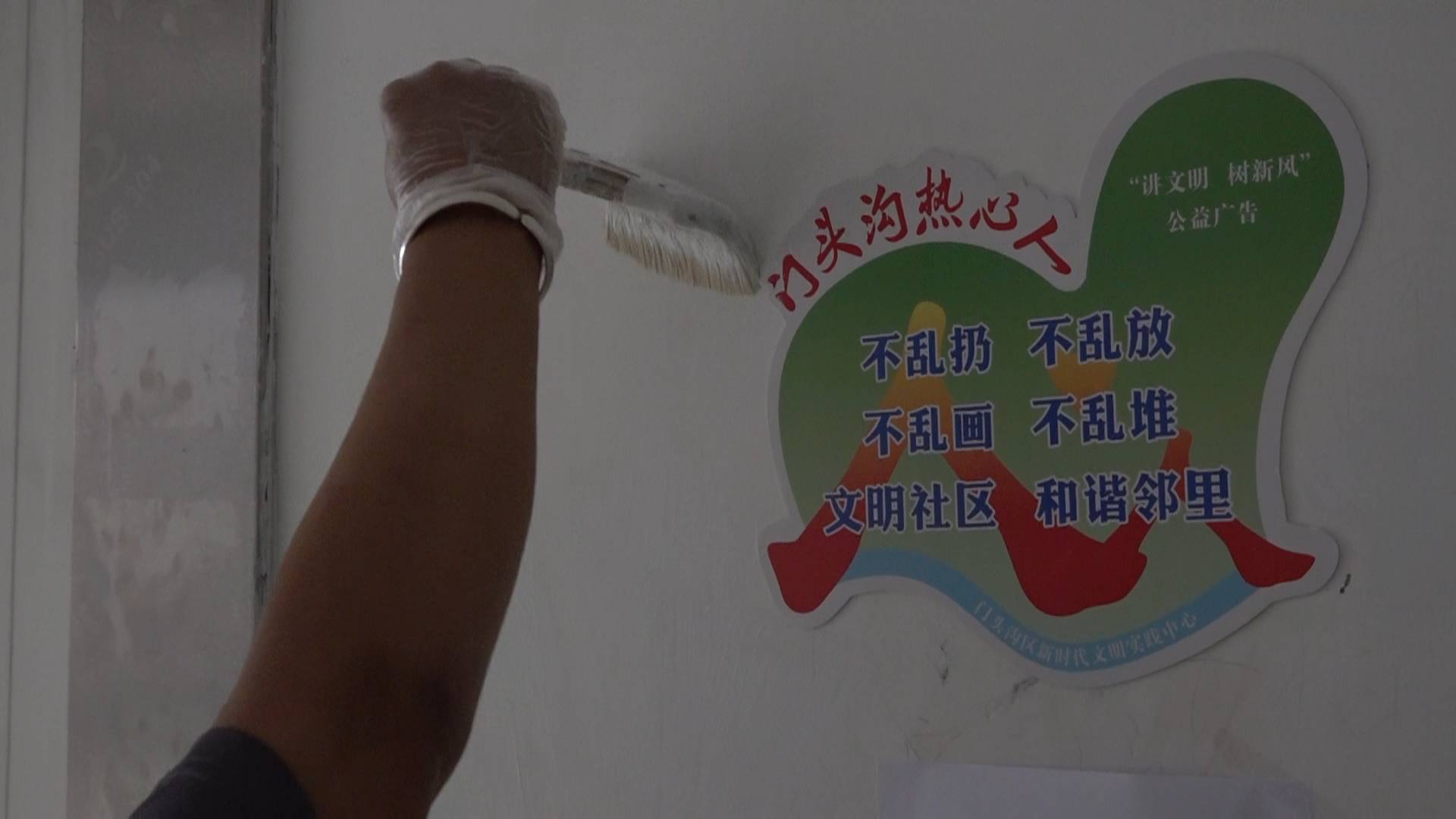 志愿者们身穿“门头沟热心人”马甲,几人一组,拿着铲子、刷子等工具,用相同颜色的环保涂料对喷涂在楼道内的小广告进行覆盖粉刷。在社区小公园里,志愿者们拿着夹子、垃圾袋在健身器材、休闲座椅等重点区域捡拾烟头、垃圾杂物,以实际行动影响和带动身边的居民参与创建文明城区活动。