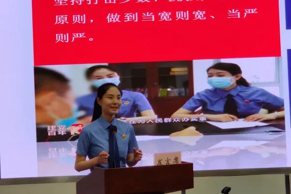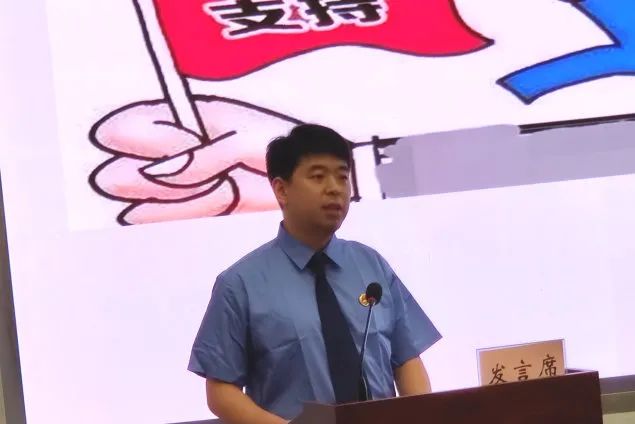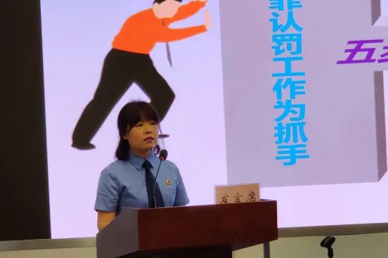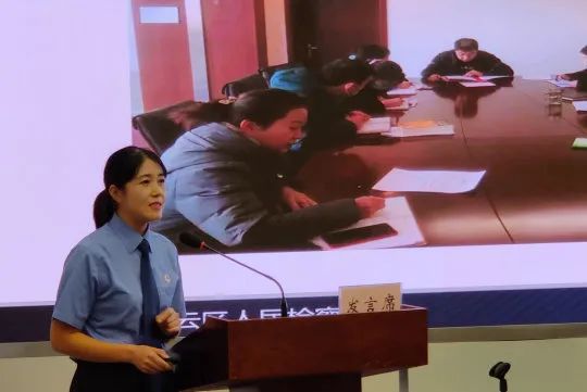 图为部分汇报人通过PPT展示的方式介绍案件办理情况