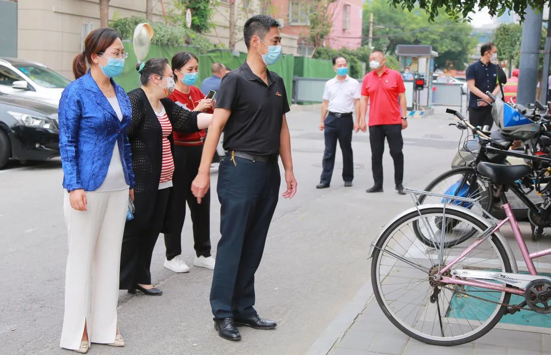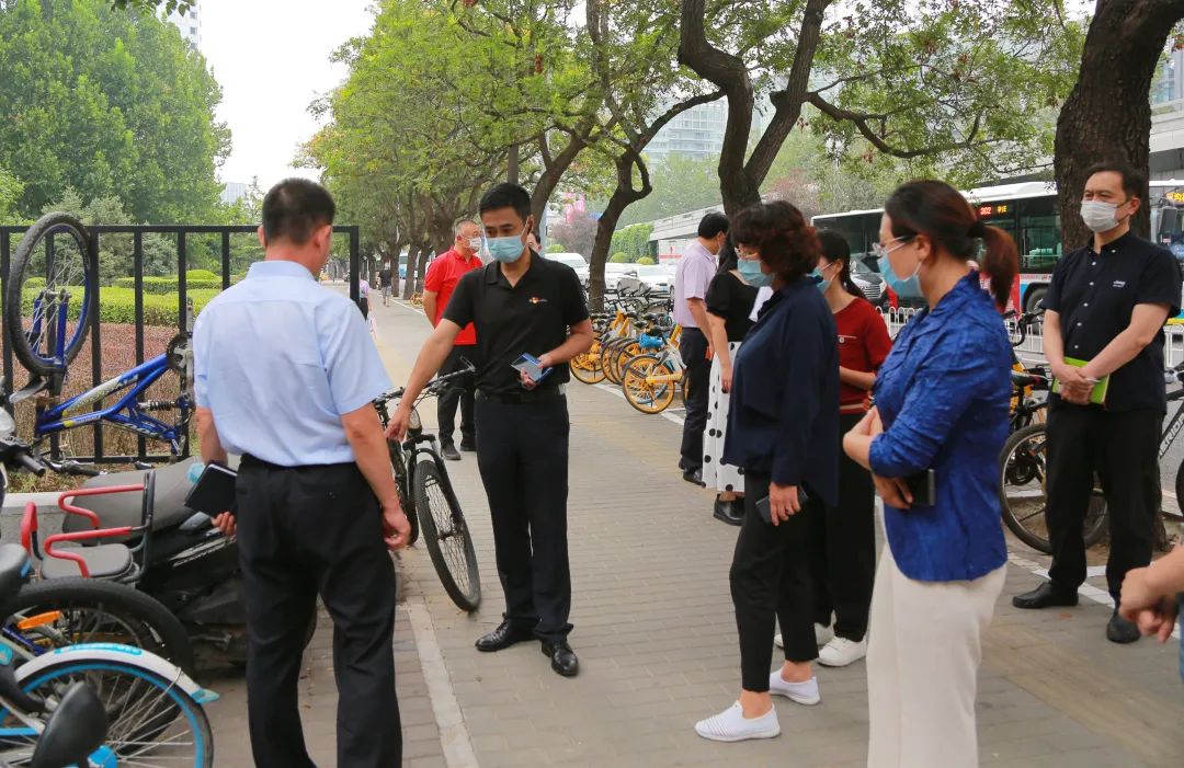 检查组一行沿街步行,查看亮马桥地铁站、威斯汀酒店等人流量大、车辆密集区域的环境卫生及机动车、非机动车停放,道路两侧共享单车摆放等情况。