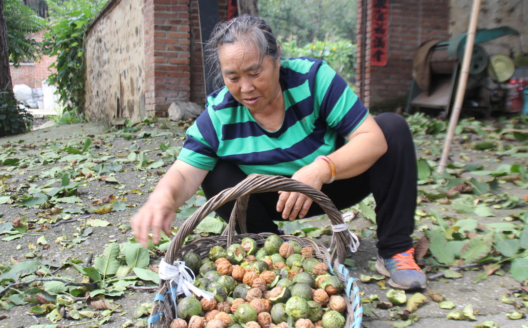 65岁的村民曹大杰正在自家的核桃树上忙活着,他种植核桃已经五十多个年头了,是村里的核桃种植大户。曹大杰说:“今年收获还不错,我家50亩地,能出1万斤核桃,要按照去年10块钱一斤卖,都卖完的话能挣2万块钱。”